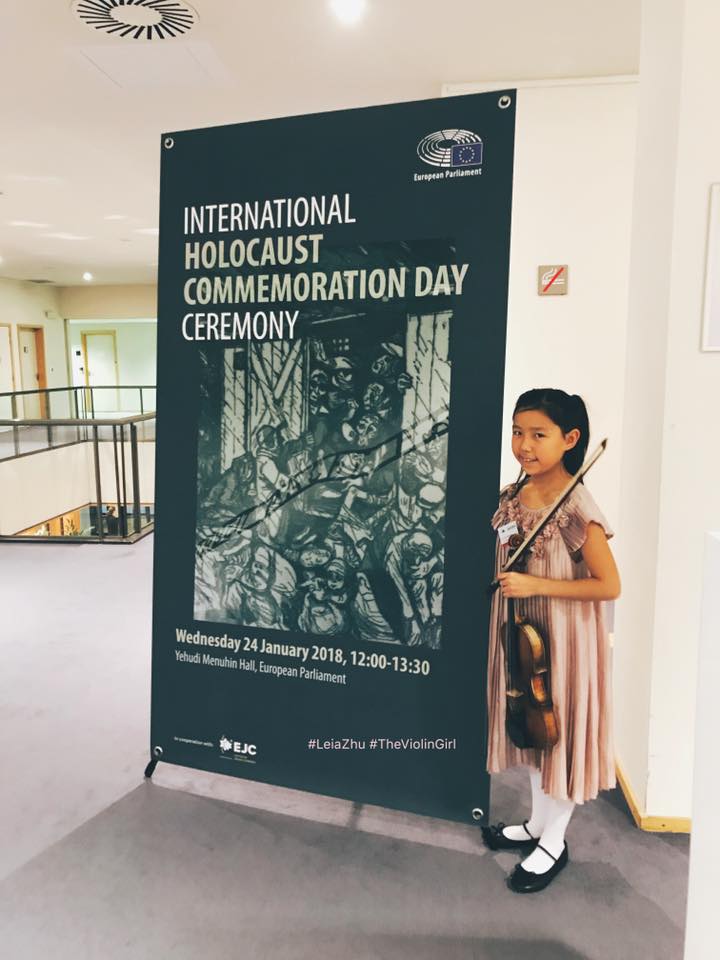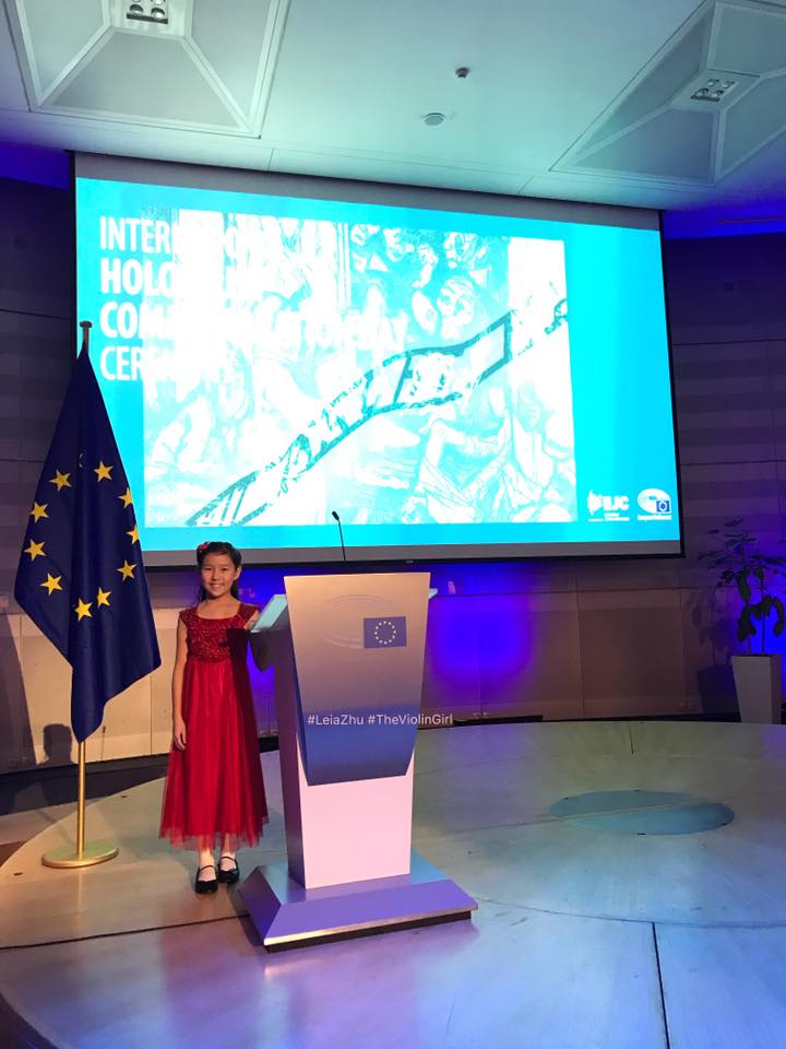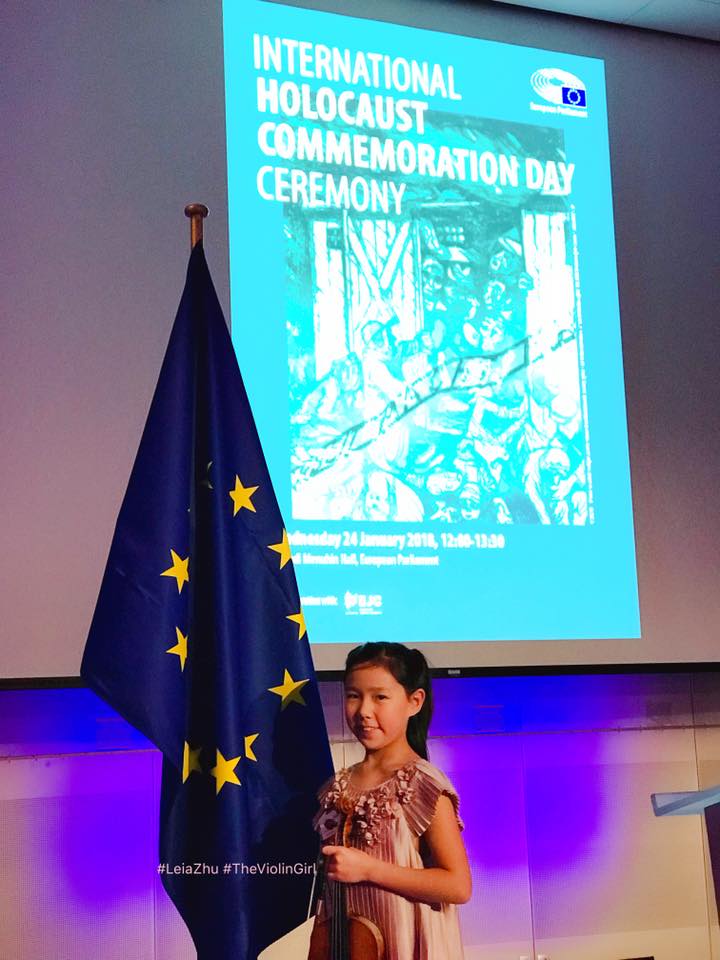 11-year-old violinist Leia Zhu performs at Yehudi Menuhin Hall, European Parliament to mark the International Holocaust Commemoration Day 2018.